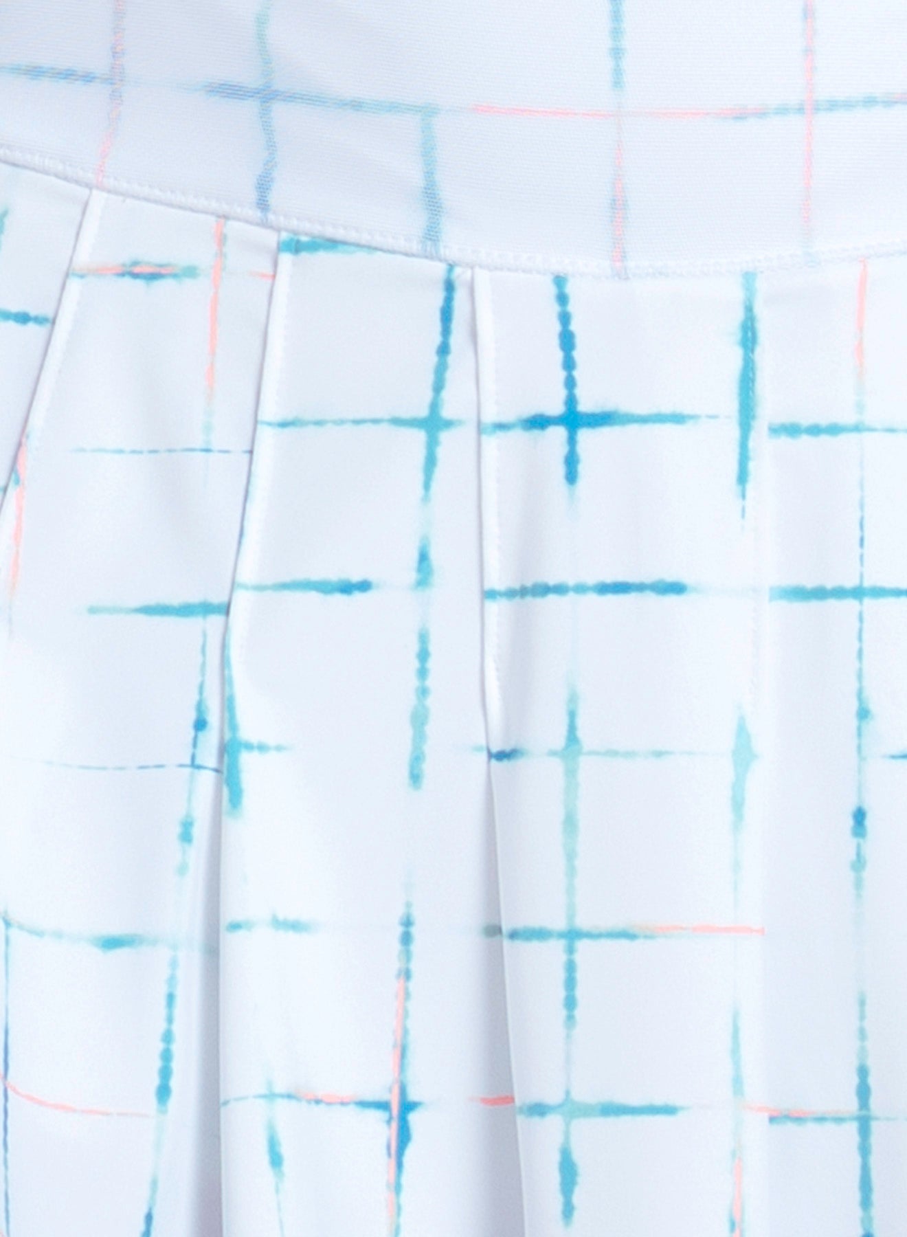 A look that can’t be beat, this watercolored-infused plaid performance print skirt features mesh panel details that blend fashion with function, while the high-low shirttail hemline adds a playful twist. It all comes together for a perfect balance of retro fun with modern chic.