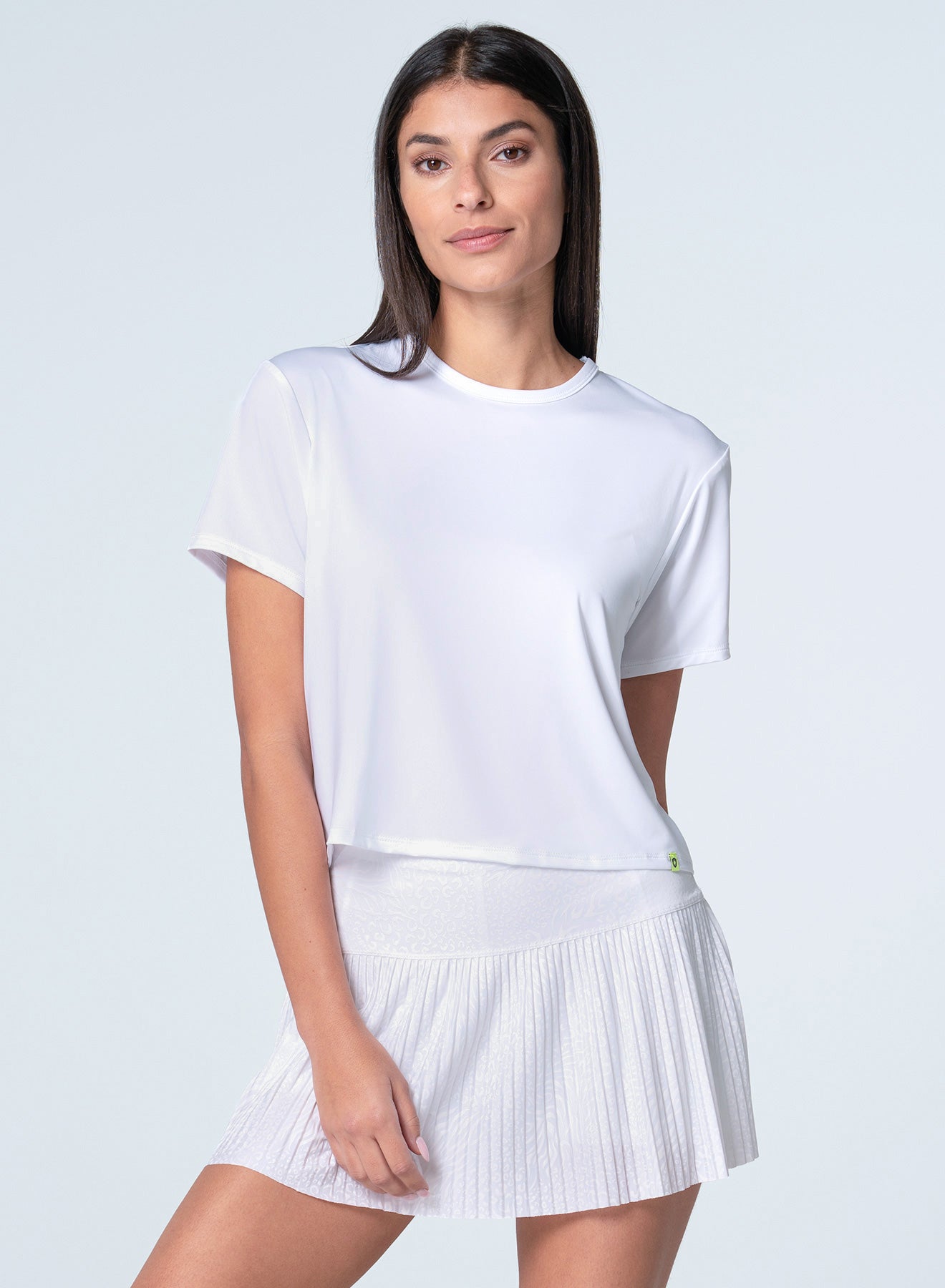 Turn heads at the country club in our stunning all-white pleated skirt, featuring a chic tone-on-tone cheetah pattern print that adds a playful twist to your tennis ensemble. Crafted from lightweight performance jersey, this skirt is designed for ease of movement, ensuring you look and feel fabulous as you dominate the court.