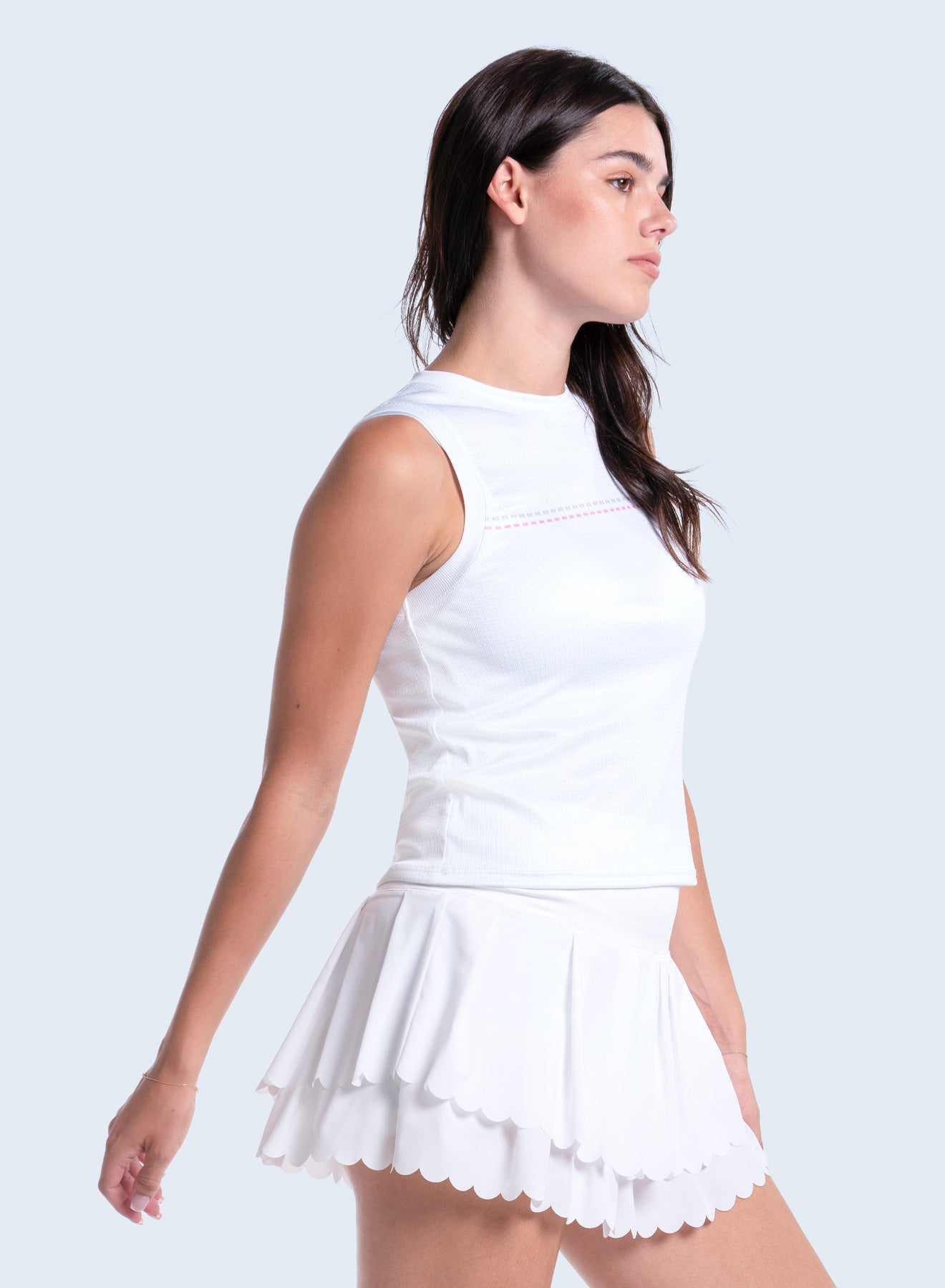 We played with soft textures and patterns so you can play in style. This easy-fitting muscle tank has a contrast chest stripe for an active appeal while the length hits at the high hip, creating a flattering fit for effortless wear and play. It’s all done in our lightweight rib performance fabric.