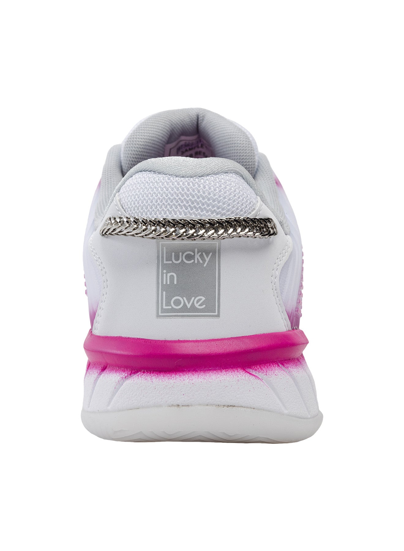 Las marcas líderes de calzado y ropa de tenis K-Swiss y Lucky In Love hacen historia al colaborar en una colección de productos de edición limitada. K-Swiss utilizó el modelo de calzado más vendido de la industria del tenis, Hypercourt Express 2, y colaboró con Brad Singer, fundador de Lucky In Love, y su equipo de diseño para crear una zapatilla. El calzado Performance Hypercourt Express 2 x Lucky In Love tiene características que no están disponibles en ningún otro modelo actual de calzado K-Swiss, incluidos logotipos de colaboración, talón y caña iridiscentes, así como una suela exterior translúcida.