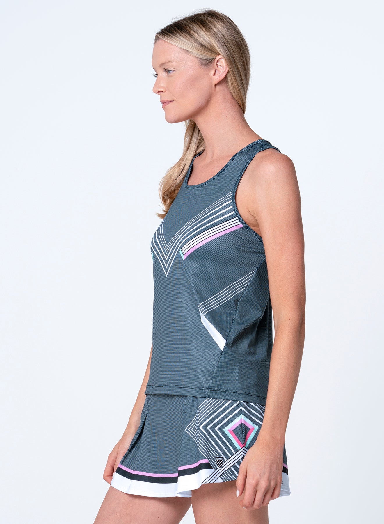 Designed with performance in mind. This ultra-lightweight tank has a dynamic geometric color block design and is crafted from all-performance fabric that offers maximum breathability, ease of movement and moisture-wicking capabilities to keep you cool and collecting wins.