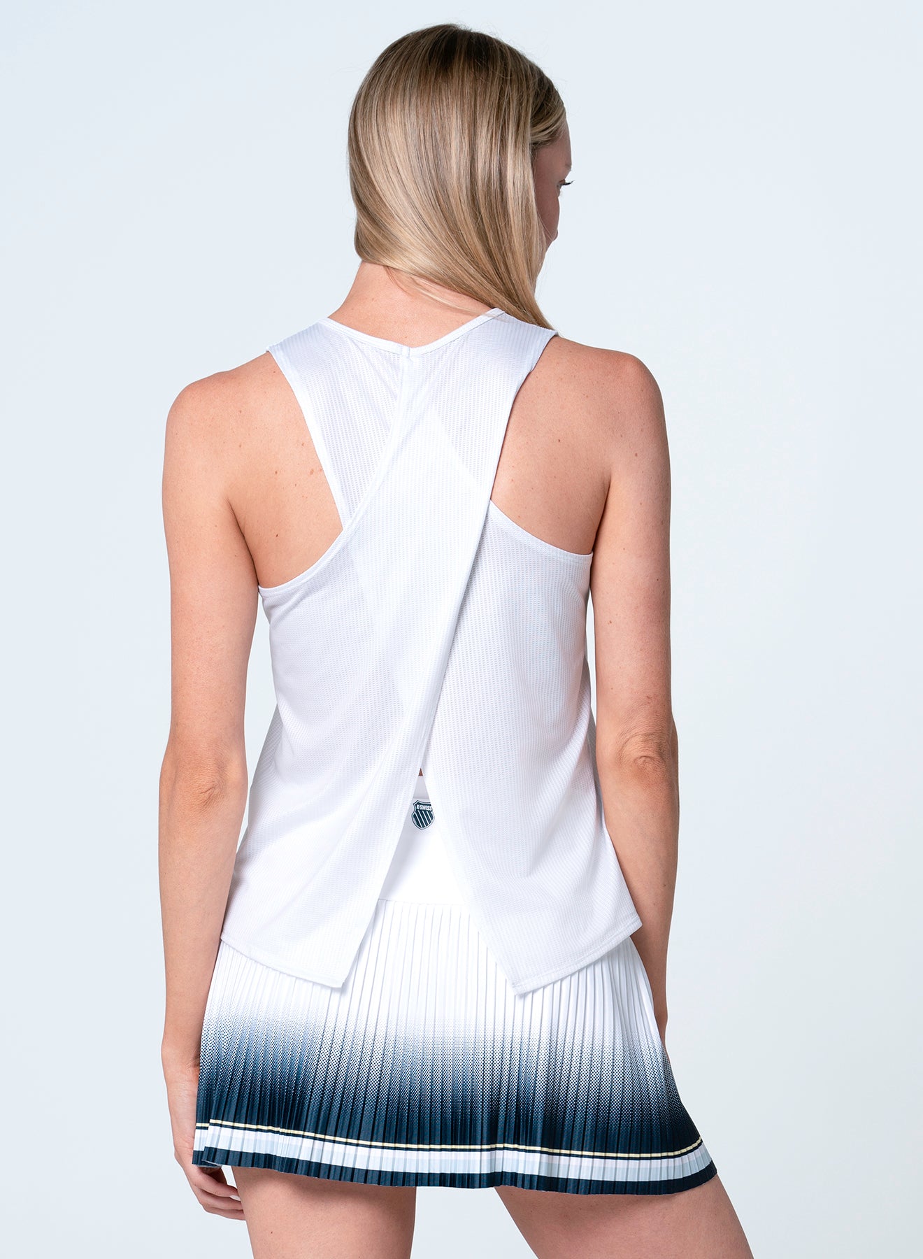 A performance tank crafted to dominate your competition. Crafted from ultra-lightweight all-performance fabric with maximum breathability and moisture-wicking properties and featuring a unique back slit design giving you full extension and reach with every swing.