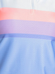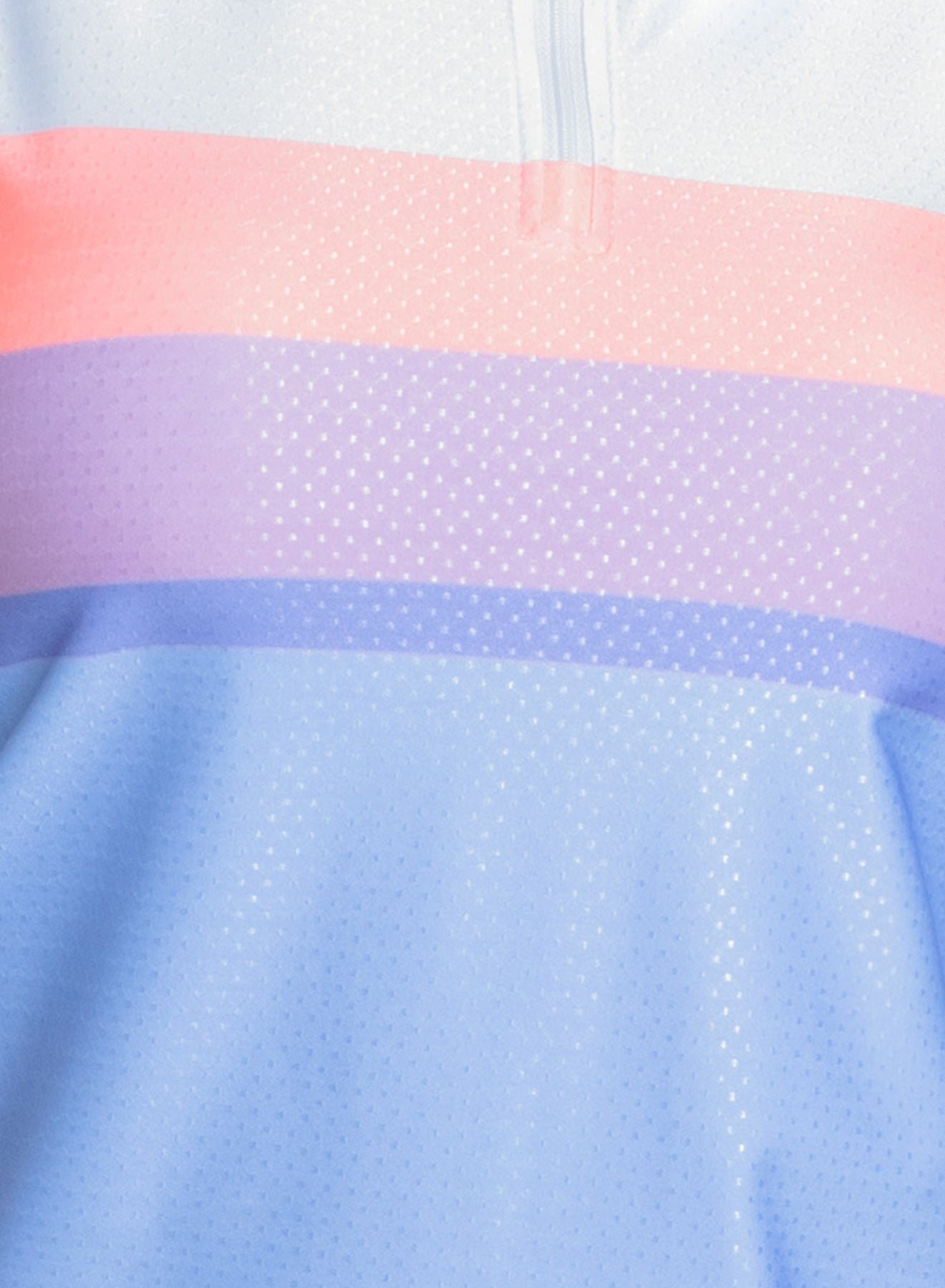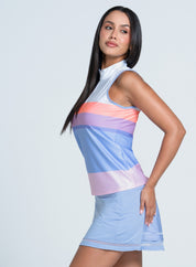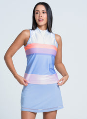 A color block top that makes a vibrant statement on the course. This zip mock neck tank has mesh detail around the armholes for modern flair and added breathability. The semi-fit silhouette is designed to shape the body, providing comfort. It’s all done in a beautiful bird’s eye jacquard fabric.