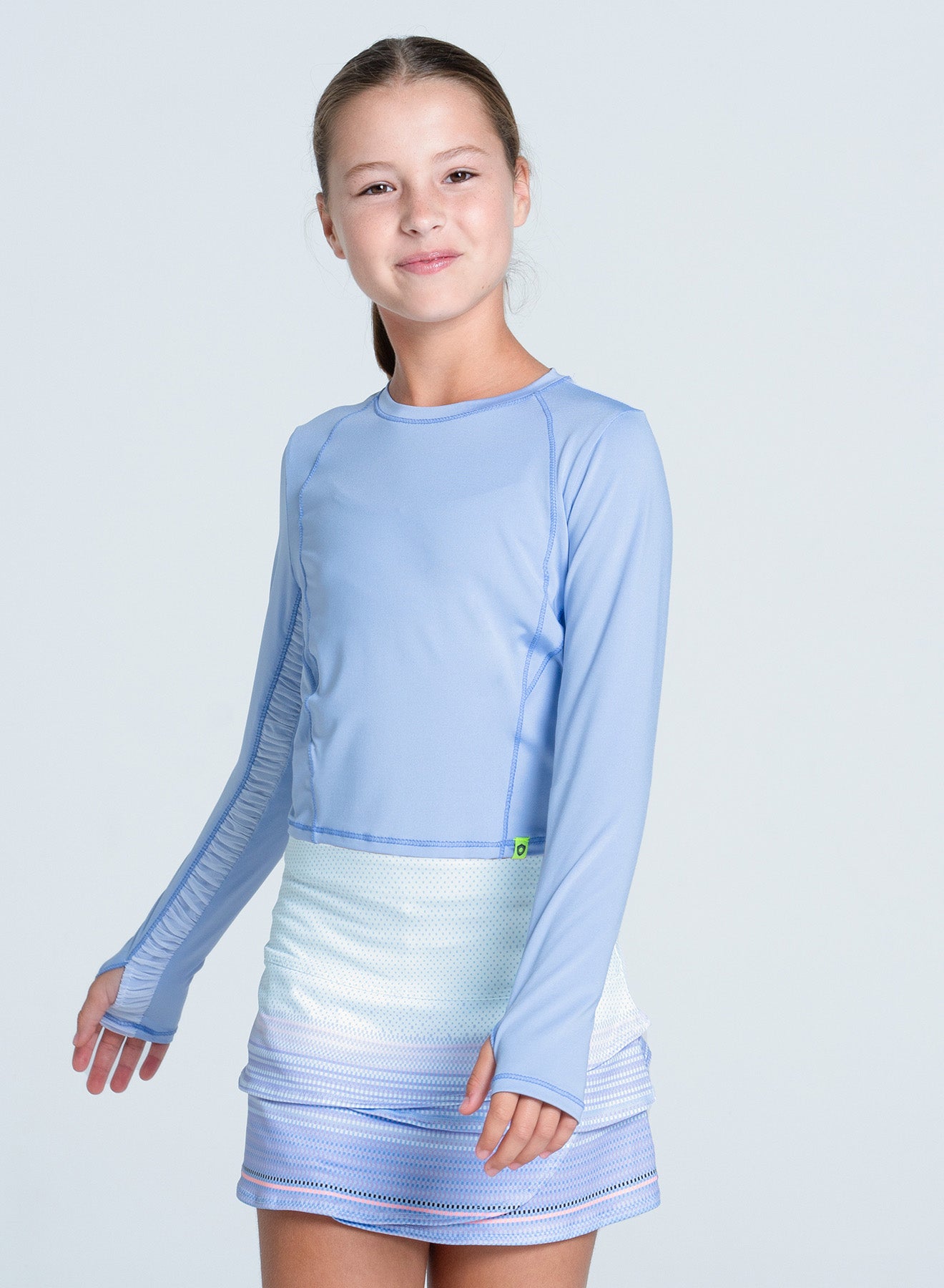 A vibrant skirt that adds color to her play. Lucky’s signature scallop skirt is done in a modern ombre that's done in a sophisticated color palette. Comes with a built-in performance shortie with pockets.