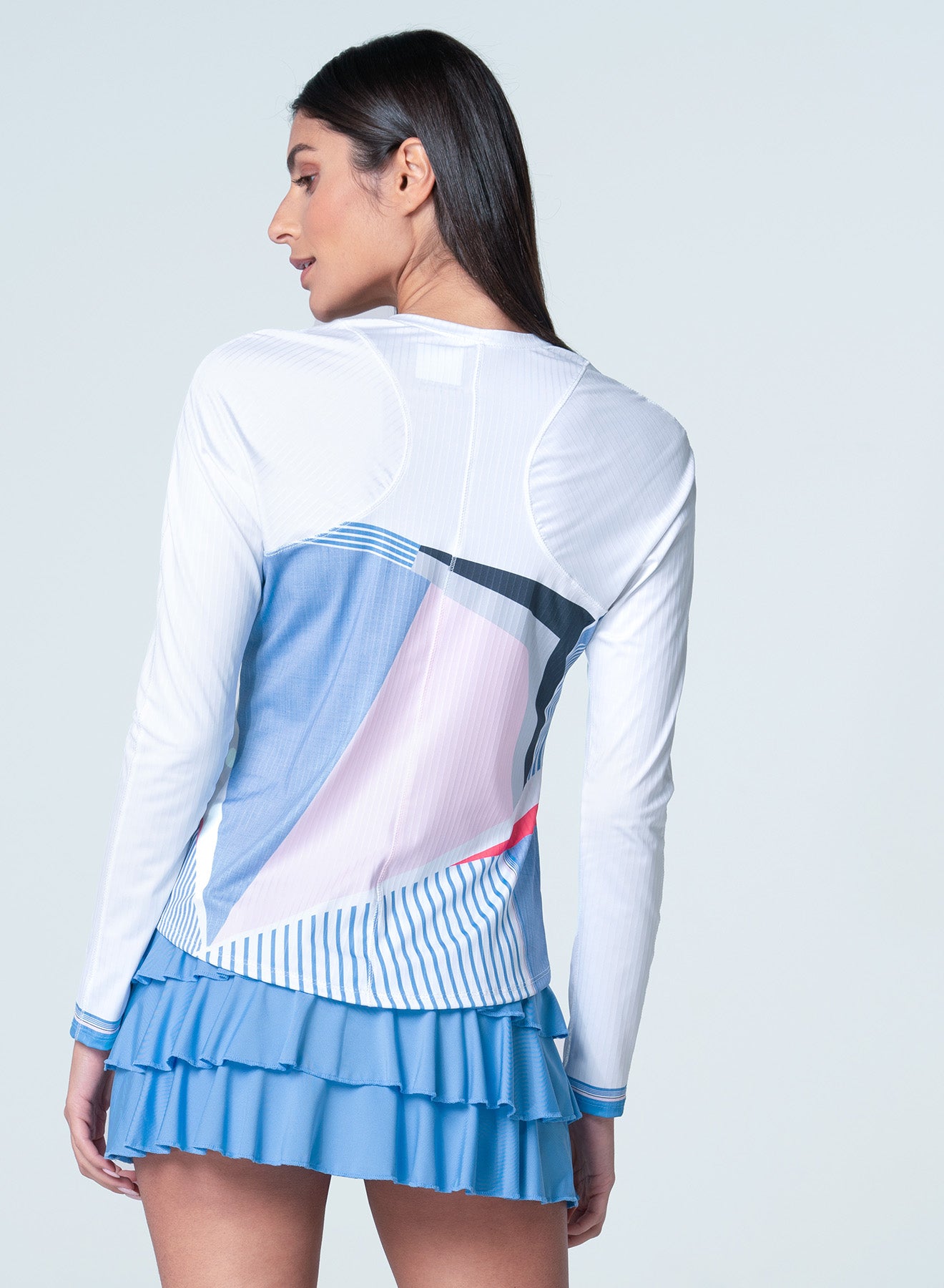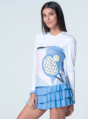 Retro vibes in a modern performance long sleeve. Done in a lightweight performance rib fabric that feels as soft as a cloud (If you could wear a cloud. Featuring retro-inspired tennis graphics, a sophisticated linen printed texture and a performance-first design, blending fashion and function for a look that will ace the court.
