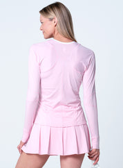The Win It Long Sleeve offers light coverage with clean contrast details and subtle star accents. Stretch fabric keeps you moving comfortably while adding a polished layer to your court-ready look.