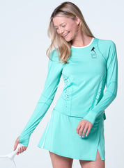 The Win It Long Sleeve offers light coverage with clean contrast details and subtle star accents. Stretch fabric keeps you moving comfortably while adding a polished layer to your court-ready look.