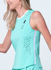 Sleek and sporty, the Win It Tank delivers a breathable fit with subtle laser-cut star accents. Designed for movement with a flattering, athletic cut — perfect for high-energy play or styling off the court.